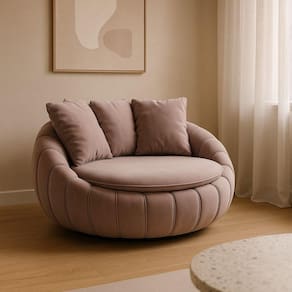 Imagine-se chegando em casa após um longo dia e encontrando o abraço perfeito envolvente, elegante e acolhedor. Essa é a proposta da poltrona giratória em Veludo, que une design curvo, conforto estruturado e mobilidade fluida em uma peça só.
