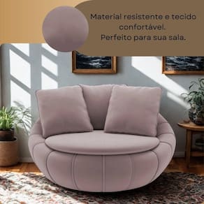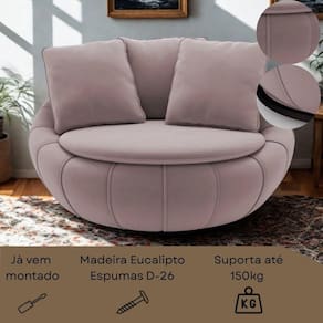 Seu estofado em Veludo de textura suave transmite leveza visual e um toque delicado à pele, enquanto o acabamento posterior em veludo adiciona sofisticação e contraste moderno. A base giratória discreta permite uma experiência dinâmica, perfeita para ambientes integrados ou momentos de leitura e relaxamento com vista para todos os ângulos.