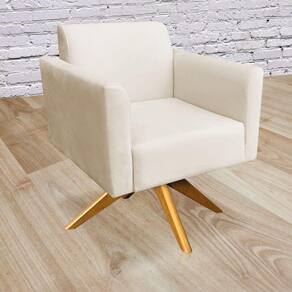 Poltrona Giratória Marisa Suede Bege Base de Madeira D'Rossi