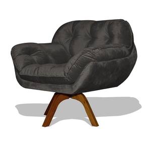 Poltrona Giratória Miami Suede Base de Madeira - SSX Multicoisas - Cinza