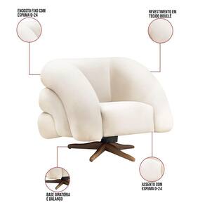 Poltrona Giratória Orgânica Com Balanço Kit 2 Tana Bouclê E03 - D'rossi Cor Bege A poltrona Tana é uma peça elegante e funcional, projetada para proporcionar conforto e estilo. Ela possui uma base de ferro giratória, o que permite que você gire a cadeira com facilidade, além de ter um balanço suave, proporcionando uma experiência de relaxamento agradável. A aplicação de espuma em camadas nas costas oferece suporte anatômico e conforto extra, ajudando a aliviar a pressão nas costas durante longos períodos de uso. Contém também um lindo revestimento em tecido Bouclê, que cria uma conexão entre a peça e o ambiente. Pode ser utilizada em sala de estar, recepções, escritórios, lojas e espaços comerciais, ou qualquer outro espaço que você queira decorar com estilo e bom gosto. Ela tem uma estrutura em madeira de reflorestamento eucalipto, que garante a resistência e a sustentabilidade do produto. Ela suporta até 120 kg de peso, podendo ser utilizada por pessoas de diferentes biotipos. Ela tem um acabamento reforçado e espuma de qualidade D24, que oferece maciez e aconchego. Ela é fácil de transportar, pois tem um peso leve e um tamanho compacto. A Poltrona Tana é um produto que vai fazer a diferença na sua decoração e no seu bem-estar. Garanta já seu Kit 2 Poltronas! Dimensões do Produto: Altura Total: 79 cm Largura Total: 94 cm Profundidade Total: 75 cm Peso: 35 kg Especificações do Produto: Estrutura: Madeira Eucalipto Reflorestada Densidade da espuma: Espuma D-24 Revestimento: Tecido Bouclê (Disponível em ) Peso Suportado: Até 120 Kg Tipo de Pés: Base de ferro Giratório e Balanço Diferenciais: Design moderno; Aplicação de espuma em camadas Complexidade da Montagem: Baixo Montagem: O produto vai montado Garantia: 90 dias contra de fabricação Instruções de Limpeza: Utilizar um pano limpo e levemente úmido Quantidade de Volumes 2 Caixas Medida das Embalagens Caixa 1: 82 cm x 97 cm x 78 cm e Caixa 2: 82 cm x 97 cm x 78 cm : É feita somente até o térreo ou portaria. Não levamos em andares superiores. Confira sempre as medidas das embalagens.