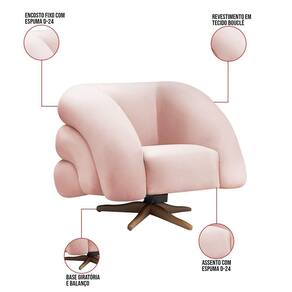 Poltrona Giratória Orgânica Com Balanço Kit 2 Tana Bouclê E03 - D'rossi Cor Rose A poltrona Tana é uma peça elegante e funcional, projetada para proporcionar conforto e estilo. Ela possui uma base de ferro giratória, o que permite que você gire a cadeira com facilidade, além de ter um balanço suave, proporcionando uma experiência de relaxamento agradável. A aplicação de espuma em camadas nas costas oferece suporte anatômico e conforto extra, ajudando a aliviar a pressão nas costas durante longos períodos de uso. Contém também um lindo revestimento em tecido Bouclê, que cria uma conexão entre a peça e o ambiente. Pode ser utilizada em sala de estar, recepções, escritórios, lojas e espaços comerciais, ou qualquer outro espaço que você queira decorar com estilo e bom gosto. Ela tem uma estrutura em madeira de reflorestamento eucalipto, que garante a resistência e a sustentabilidade do produto. Ela suporta até 120 kg de peso, podendo ser utilizada por pessoas de diferentes biotipos. Ela tem um acabamento reforçado e espuma de qualidade D24, que oferece maciez e aconchego. Ela é fácil de transportar, pois tem um peso leve e um tamanho compacto. A Poltrona Tana é um produto que vai fazer a diferença na sua decoração e no seu bem-estar. Garanta já seu Kit 2 Poltronas! Dimensões do Produto: Altura Total: 79 cm Largura Total: 94 cm Profundidade Total: 75 cm Peso: 35 kg Especificações do Produto: Estrutura: Madeira Eucalipto Reflorestada Densidade da espuma: Espuma D-24 Revestimento: Tecido Bouclê (Disponível em ) Peso Suportado: Até 120 Kg Tipo de Pés: Base de ferro Giratório e Balanço Diferenciais: Design moderno; Aplicação de espuma em camadas Complexidade da Montagem: Baixo Montagem: O produto vai montado Garantia: 90 dias contra de fabricação Instruções de Limpeza: Utilizar um pano limpo e levemente úmido Quantidade de Volumes 2 Caixas Medida das Embalagens Caixa 1: 82 cm x 97 cm x 78 cm e Caixa 2: 82 cm x 97 cm x 78 cm : É feita somente até o térreo ou portaria. Não levamos em andares superiores. Confira sempre as medidas das embalagens.