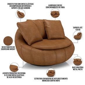 Seja para adicionar assento extra na sala de estar ou para dar um toque de charme no living, escritório e até mesmo quarto, essa poltrona redonda proporciona conforto e bem-estar, enquanto agrega sofisticação e modernidade; afinal é um estofado bem estruturado com materiais alto padrão. Tudo isso para gerar conforto para você e sua família em uma peça única feita com todo cuidado e observada nos detalhes para superar as suas expectativas! Adquira o seu!