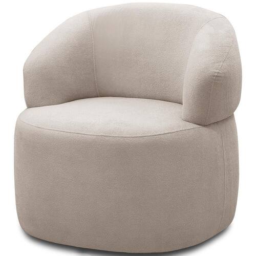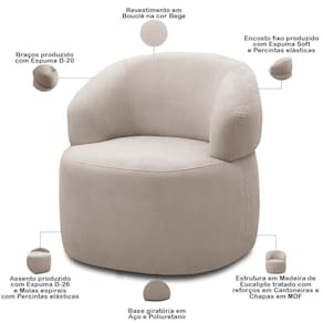 A Poltrona Giratória Sala de Estar Living Orgânico Carmen F04 Bouclê Bege, da Lyam Decor, é uma peça única e versátil, capaz de transformar a decoração de qualquer ambiente.
