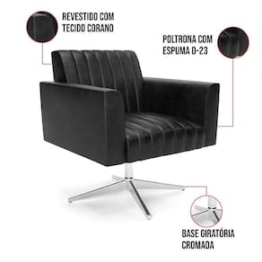 Quer uma decoração única e sofisticada? A Poltrona Viena é ideal para quem está em busca de um móvel versátil e diferenciado. Esse tipo de peça é ideal para ambientes modernos e descontraídos. Vem com uma ideia totalmente diferente, devido sua curva e forma suave, os detalhes gomados do tecido são tendências de decoração atuais. O tom Preto vem ganhando cada vez mais espaço no mercado, uma cor que traz elegância e combina com vários tipos de decoração. Uma dica legal de complemento é escolher almofadas que combinem com a poltrona. Sua estrutura é confeccionada em madeira de eucalipto proveniente de reflorestamento, o estofamento do assento é composto de espuma prorelax D-23 no encosto, e é revestido em Corano um tecido aconchegante, resistente e extremamente luxuoso. Sua sustentação é dada pela Base Giratória Cromada, suportando em média até 120 Kg. Crie um lindo efeito visual, em qualquer lugar da sua casa ou escritório! Garanta já sua Poltrona Viena.