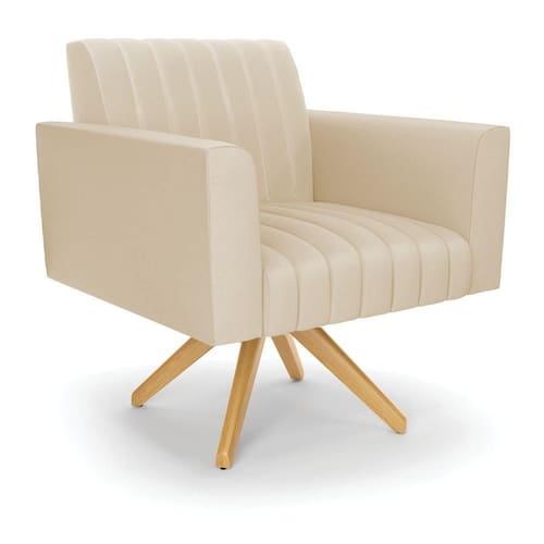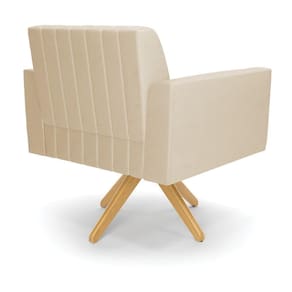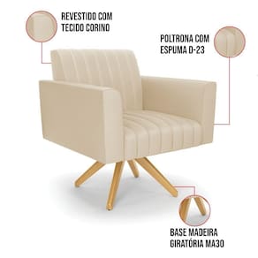Poltrona Giratória Viena Gomada Corino Base De Madeira Ma30 - D'rossi Cor Bege Quer uma decoração única e sofisticada? A Poltrona Viena é ideal para quem está em busca de um móvel versátil e diferenciado. Esse tipo de peça é ideal para ambientes modernos e descontraídos. Vem com uma ideia totalmente diferente, devido sua curva e forma suave, os detalhes gomados do tecido são tendências de decoração atuais. Uma dica legal de complemento é escolher almofadas que combinem com a poltrona. Sua estrutura é confeccionada em madeira de eucalipto proveniente de reflorestamento, o estofamento do assento é composto de espuma prorelax D-23 no encosto, e é revestido em Corino um tecido aconchegante, resistente e extremamente luxuoso. Sua sustentação é dada pela Base Giratória Madeira MA30, suportando em média até 120 Kg. Crie um lindo efeito visual, em qualquer lugar da sua casa ou escritório! Garanta já sua Poltrona Viena. Dimensões da Poltrona: