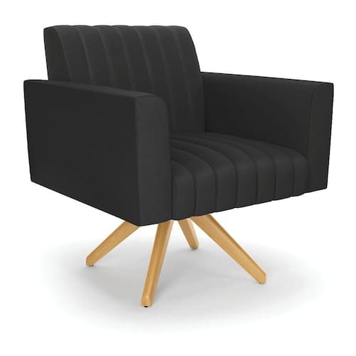 Poltrona Giratória Viena Gomada Corino Preto Base De Madeira Ma30 - D'rossi Quer uma decoração única e sofisticada? A Poltrona Viena é ideal para quem está em busca de um móvel versátil e diferenciado. Esse tipo de peça é ideal para ambientes modernos e descontraídos. Vem com uma ideia totalmente diferente, devido sua curva e forma suave, os detalhes gomados do tecido são tendências de decoração atuais. O tom Preto vem ganhando cada vez mais espaço no mercado, uma cor que traz elegância e combina com vários tipos de decoração. Uma dica legal de complemento é escolher almofadas que combinem com a poltrona. Sua estrutura é confeccionada em madeira de eucalipto proveniente de reflorestamento, o estofamento do assento é composto de espuma prorelax D-23 no encosto, e é revestido em Corino um tecido aconchegante, resistente e extremamente luxuoso. Sua sustentação é dada pela Base Giratória Madeira MA30, suportando em média até 120 Kg. Crie um lindo efeito visual, em qualquer lugar da sua casa ou escritório! Garanta já sua Poltrona Viena. Dimensões da Poltrona: