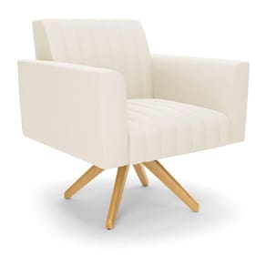 Poltrona Giratória Viena Gomada Veludo Base De Madeira Ma30 - D`rossi Cor Bege - Blush