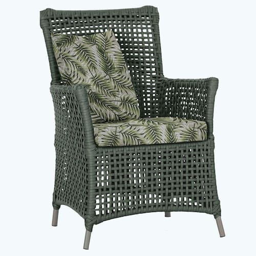A corda nautica adiciona um toque de rusticidade moderna, enquanto o estofado impermeavel garante que sua poltrona esteja sempre impecavel, mesmo apos uma chuva inesperada ou um acidente com liquidos.