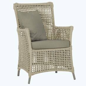 A corda nautica adiciona um toque de rusticidade moderna, enquanto o estofado impermeavel garante que sua poltrona esteja sempre impecavel, mesmo apos uma chuva inesperada ou um acidente com liquidos.