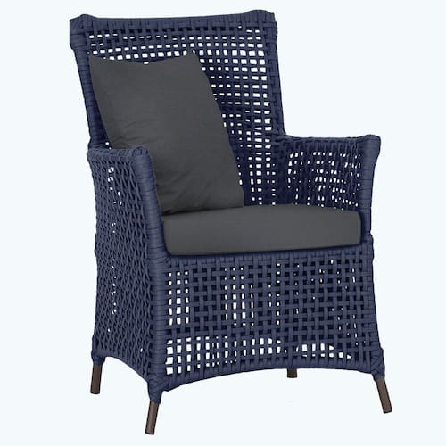 A corda náutica adiciona um toque de rusticidade moderna, enquanto o estofado impermeável garante que sua poltrona esteja sempre impecável, mesmo após uma chuva inesperada ou um acidente com líquidos.