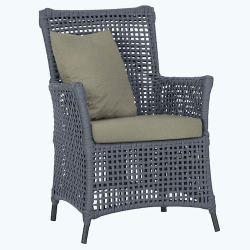 A corda nautica adiciona um toque de rusticidade moderna, enquanto o estofado impermeavel garante que sua poltrona esteja sempre impecavel, mesmo apos uma chuva inesperada ou um acidente com liquidos.