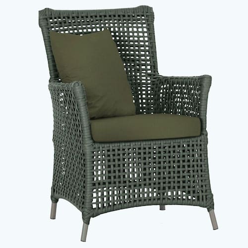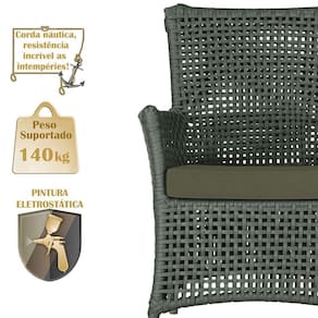 A corda nautica adiciona um toque de rusticidade moderna, enquanto o estofado impermeavel garante que sua poltrona esteja sempre impecavel, mesmo apos uma chuva inesperada ou um acidente com liquidos.