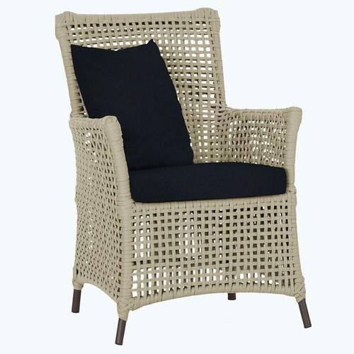 A corda nautica adiciona um toque de rusticidade moderna, enquanto o estofado impermeavel garante que sua poltrona esteja sempre impecavel, mesmo apos uma chuva inesperada ou um acidente com liquidos.