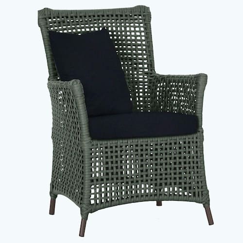 A corda nautica adiciona um toque de rusticidade moderna, enquanto o estofado impermeavel garante que sua poltrona esteja sempre impecavel, mesmo apos uma chuva inesperada ou um acidente com liquidos.