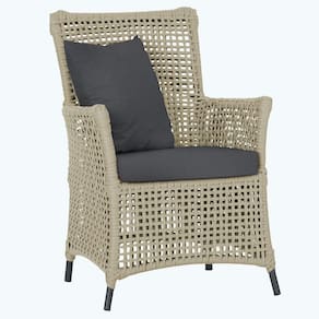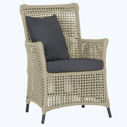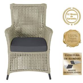 A corda nautica adiciona um toque de rusticidade moderna, enquanto o estofado impermeavel garante que sua poltrona esteja sempre impecavel, mesmo apos uma chuva inesperada ou um acidente com liquidos.