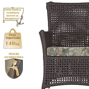 A corda náutica adiciona um toque de rusticidade moderna, enquanto o estofado impermeável garante que sua poltrona esteja sempre impecável, mesmo após uma chuva inesperada ou um acidente com líquidos.