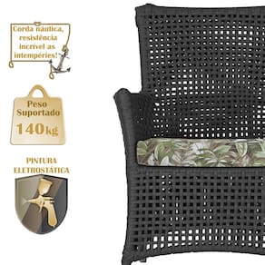 A corda náutica adiciona um toque de rusticidade moderna, enquanto o estofado impermeável garante que sua poltrona esteja sempre impecável, mesmo após uma chuva inesperada ou um acidente com líquidos.