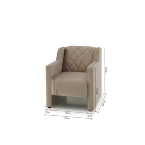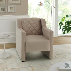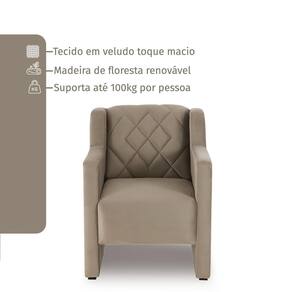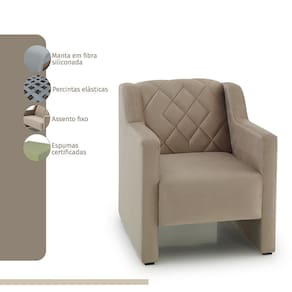 Assentos com espuma flexível de poliuretano densidade 26kg/m, certificada, fabricação própria, sustentados por percinta elástica. Enchimento do encosto: 100% fibra siliconadas. Estrutura de madeira maciça de pinus e eucalipto 100% reflorestada. Fixação da estrutura: grampos galvanizados anti-ferrugem. Apoiados no chão com sapatas de pvc. Revestimento/tecido: veludo 100% poliéster, com toque macio.