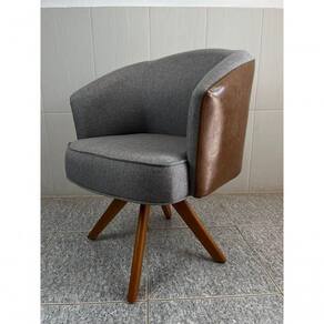 Poltrona Julia Giratoria Com Couro Pes Madeira - Luxo Decor Cinza/couro A Poltrona Julia é a escolha ideal para quem busca sofisticação aliada ao máximo de conforto. Com linhas curvas e design orgânico, ela se adapta com facilidade a diferentes estilos de decoração, sendo perfeita para compor salas de estar, quartos, recepções ou até mesmo home offices com um toque moderno e acolhedor. Seu acabamento refinado e estrutura robusta garantem durabilidade e funcionalidade no dia a dia. Equipada com base giratória, assento fixo com espuma D28 e encosto com espuma D26 e pluma siliconada, proporciona uma experiência de conforto superior, ideal para momentos de relaxamento ou socialização. A combinação de madeira de reflorestamento e materiais de alto padrão reflete o compromisso com sustentabilidade e qualidade.
