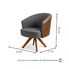 Poltrona Julia Giratoria Com Couro Pes Madeira - Luxo Decor Cinza/couro A Poltrona Julia é a escolha ideal para quem busca sofisticação aliada ao máximo de conforto. Com linhas curvas e design orgânico, ela se adapta com facilidade a diferentes estilos de decoração, sendo perfeita para compor salas de estar, quartos, recepções ou até mesmo home offices com um toque moderno e acolhedor. Seu acabamento refinado e estrutura robusta garantem durabilidade e funcionalidade no dia a dia. Equipada com base giratória, assento fixo com espuma D28 e encosto com espuma D26 e pluma siliconada, proporciona uma experiência de conforto superior, ideal para momentos de relaxamento ou socialização. A combinação de madeira de reflorestamento e materiais de alto padrão reflete o compromisso com sustentabilidade e qualidade.