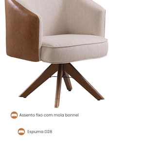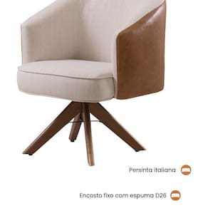 Poltrona Julia Giratoria Com Couro Pes Madeira - Luxo Decor Off White/couro A Poltrona Julia é a escolha ideal para quem busca sofisticação aliada ao máximo de conforto. Com linhas curvas e design orgânico, ela se adapta com facilidade a diferentes estilos de decoração, sendo perfeita para compor salas de estar, quartos, recepções ou até mesmo home offices com um toque moderno e acolhedor. Seu acabamento refinado e estrutura robusta garantem durabilidade e funcionalidade no dia a dia. Equipada com base giratória, assento fixo com espuma D28 e encosto com espuma D26 e pluma siliconada, proporciona uma experiência de conforto superior, ideal para momentos de relaxamento ou socialização. A combinação de madeira de reflorestamento e materiais de alto padrão reflete o compromisso com sustentabilidade e qualidade.