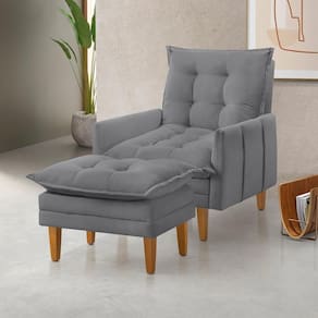 Encosto reclinável em 3 posições, apoio para braços e puff para estender as pernas.