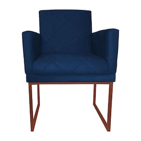 Poltrona Klara Suede Azul Marinho Base Industrial Cobre - Vallisa Decor