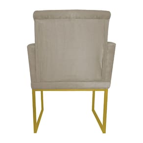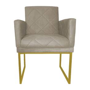 Poltrona Klara Suede Bege Base Metálica Industrial Dourada - Vallisa Decor