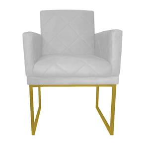 Poltrona Klara Suede Branco Base Metálica Dourada - Vallisa Decor