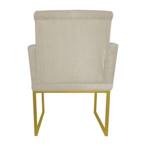 Poltrona Klara Suede Marfim Base De Ferro Dourada - Vallisa Decor - Bege Claro