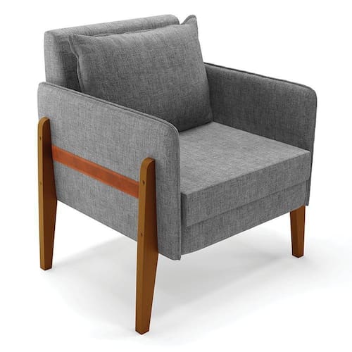 Poltrona Lana Linho Base De Madeira A26 Grafite