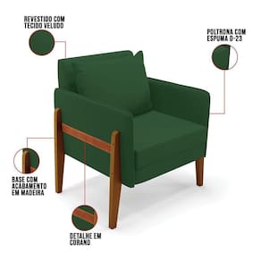 Poltrona Lana Veludo Base De Madeira - D'rossi Cor Verde