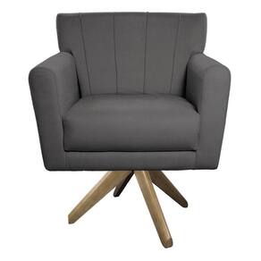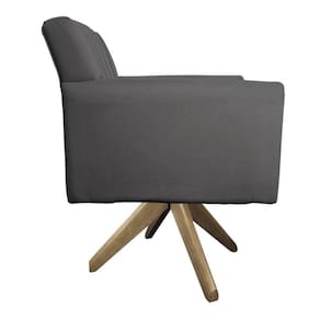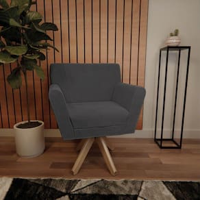 Poltrona Laura Base Giratória De Madeira Linho - Doce Sonho Móveis Cinzaescuro