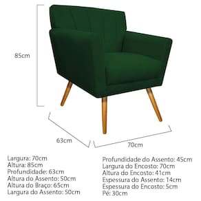 Gostaria de um móvel que trouxesse mais elegância e sofisticação para o seu lar? A Poltrona Laura é sua melhor opção! Com característica moderna e com acabamento de qualidade, este produto atenderá suas expectativas! Não perca essa oportunidade e adquira já a sua! Especificações Técnicas da Poltrona Decorativa Laura: - Altura: 85 cm; - Largura: 70 cm; - Profundidade: 63 cm; - Altura do Assento: 50 cm; - Largura do Assento: 50 cm; - Altura do Braço: 65 cm; - Profundidade do Assento: 45 cm; - Largura do Encosto: 70 cm; - Espessura do Assento: 14 cm; - Altura do Encosto: 41 cm; - Espessura do Encosto: 5 cm; - Altura dos Pés: 30 cm; - Peso: 20 kg. - Peso Suportado: 120 kg. Diferenciais da Poltrona Decorativa Laura: - Material da Estrutura: fabricado com Madeira Pinus e Eucalipto , e alguns detalhes em MDF; - Tipo de Assento: estofado e com espuma de densidade D-26; - Tipo de Encosto: estofado e com espuma de densidade D-18; - Detalhes dos Pés: acompanha kit de pés (4 pés) de madeira, no estilo Palito , com alta resistência; - Volumes: nessa compra você receberá um único produto. Recomendações de limpeza: -Limpar com flanela limpa e seca. Não molhar o móvel e não expor em lugar úmido ou próximo de fontes de calor. Não usar produtos abrasivos. Observações Importantes: - As imagens ambientadas são meramente ilustrativas e podem apresentar itens que não compõe o produto; - Objetos decorativos que aparecem na foto não acompanham o produto; - As cores do produto podem variar de acordo com o monitor, a iluminação do ambiente, ou sua percepção visual; - A Poltrona Decorativa Laura c; - -.; - .