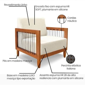 Disponível em um elegante tecido de linho, a Poltrona Lorena complementa qualquer estilo de decoração. Seu acabamento em eucalipto confere um toque natural e contemporâneo, tornando-a uma peça indispensável para o seu lar ou escritório.