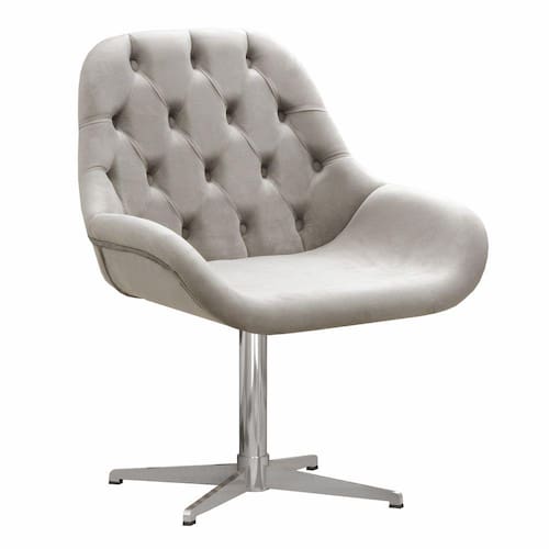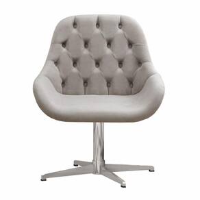 Poltrona Lua Botonê Cadeira Decorativa Pé Giratório de Metal Escritório - Bege Claro