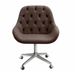 Poltrona Lua Capitonê Cadeira Giratória com Rodinhas Escritório Home Office - Marrom Escuro
