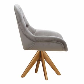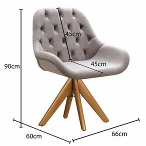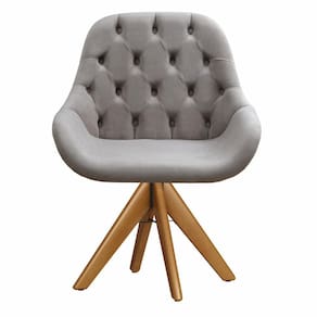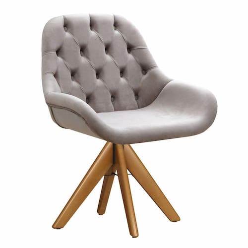 Poltrona Lua Capitonê Cadeira Pé Giratório de Madeira Decoração Sala Escritório - Cinza Claro