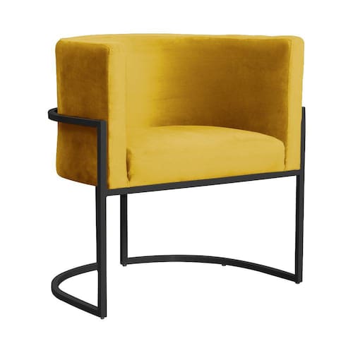 Poltrona Luana Requinte Base Preta Veludo Cores - S.A Móveis - Mostarda