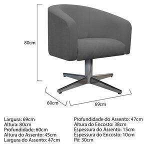 Com uma estrutura e beleza única, a Poltrona Decorativa Luiza se adapta em qualquer ambiente, tornando-o ainda mais elegante e harmonioso. Uma poltrona luxuosa de alta qualidade, dará um toque especial em seu ambiente. Não perca essa oportunidade de levar mais charme e requinte ao seu cômodo, adquira já a sua! Especificações Técnicas da Poltrona Decorativa Luiza: - Altura: 80 cm; - Largura: 69 cm; - Profundidade: 60 cm; - Altura do Assento: 45 cm; - Largura do Assento: 47 cm; - Profundidade do Assento: 47 cm; - Altura do Encosto: 38 cm; - Espessura do Assento: 15 cm; - Espessura do Encosto: 10 cm; - Altura dos Pés: 30 cm; - Peso: 20 kg. - Peso Suportado: 120 kg. Diferenciais da Poltrona Decorativa Luiza: - Material da Estrutura: fabricado com Madeira Pinus e Eucalipto Reflorestada, e alguns detalhes em MDF; - Tipo de Assento: estofado e com espuma de densidade D-26; - Tipo de Encosto: estofado e com espuma de densidade D-18; - Detalhes dos Pés: acompanha base giratória de metal, com alta resistência; - Volumes: Recomendações de limpeza: -Limpar com flanela limpa e seca. Não molhar o móvel e não expor em lugar úmido ou próximo de fontes de calor. Não produtos abrasivos. Observações Importantes: - As imagens ambientadas são meramente ilustrativas e podem apresentar itens que não compõe o produto; - Objetos decorativos que aparecem na foto não acompanham o produto; - As cores do produto podem variar de acordo com o monitor, a iluminação do ambiente, ou sua percepção visual; - A Poltrona Decorativa Luiza, bastando encaixar a base giratória; -; - ; - Produto para residencial em ambiente interno, não devendo ficar exposto diretamente ao sol, calor e umidades excessivas.