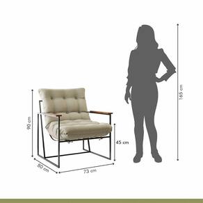 Poltrona M03 Em Linho Mais Decor Preto/bege Dona de uma tonalidade classica e design que se destaca em qualquer ambiente, a Poltrona M03 vai oferecer o empurraozinho que seu lar-style precisa para ficar impecavel. Com estrutura moderna, o cantinho em que escolher posiciona-la - seja sala de estar, dormitorio ou home office - ficara aconchegante e os momentos relax serao muito mais completos e prazerosos. De quebra, a decoracao vai ganhar uma aliada de muito charme e que sera essencial para deixar o dia a dia ai na sua casa mais bonito e sofisticado. Caracteristicas: Marca: Mais Decor Modelo: M03 Tecido Predominante: Linho Material da Estrutura: Ferro Tipo de Poltrona: Decorativa Acompanha Puff: Nao Tipo de Encosto: Fixo Almofada do Encosto: Fixa Enchimento do Encosto: Espuma D-18 Altura do Encosto: 50 cm Tipo de Espuma do Encosto: Fibra Siliconada Tipo de Assento: Fixo Altura do Assento ate o Chao: 45 cm Enchimento do Assento: Espuma D-26 Firmeza do Assento: Medio Tipo de Espuma do Assento: Espuma Convencional Material do Braco: Madeira Possui Apoio para Bracos: Sim Enchimento do Braco: Nao Possui Possui Pes: 04 Material dos Pes: Ferro Altura dos Pes: 31 cm Necessita Montagem: Nao Recomendacoes de Uso, Manutencao e Limpeza: Uma boa maneira de aumentar o tempo de vida util do seu sofa e evitar exposicao direta do estofado ao sol, ja que os raios podem queimar e manchar a grande maioria dos tecidos desses itens da sua casa. Suporta Ate (kg): 120 Possui Percintas Elasticas: Sim