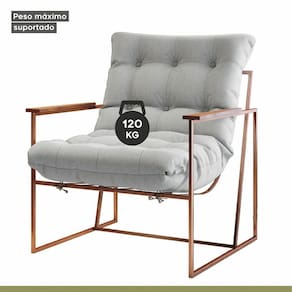Poltrona M03 Estrutura Em Ferro Mais Decor Cobre/cinza Dona de uma tonalidade classica e design que se destaca em qualquer ambiente, a Poltrona M03 vai oferecer o empurraozinho que seu lar-style precisa para ficar impecavel. Com estrutura moderna, o cantinho em que escolher posiciona-la - seja sala de estar, dormitorio ou home office - ficara aconchegante e os momentos relax serao muito mais completos e prazerosos. De quebra, a decoracao vai ganhar uma aliada de muito charme e que sera essencial para deixar o dia a dia ai na sua casa mais bonito e sofisticado. Caracteristicas: Marca: Mais Decor Modelo: M03 Tecido Predominante: Linho Material da Estrutura: Ferro Tipo de Poltrona: Decorativa Acompanha Puff: Nao Tipo de Encosto: Fixo Almofada do Encosto: Fixa Enchimento do Encosto: Espuma D-18 Altura do Encosto: 50 cm Tipo de Espuma do Encosto: Fibra Siliconada Tipo de Assento: Fixo Altura do Assento ate o Chao: 45 cm Enchimento do Assento: Espuma D-26 Firmeza do Assento: Medio Tipo de Espuma do Assento: Espuma Convencional Material do Braco: Madeira Possui Apoio para Bracos: Sim Enchimento do Braco: Nao Possui Possui Pes: 04 Material dos Pes: Ferro Altura dos Pes: 31 cm Necessita Montagem: Nao Recomendacoes de Uso, Manutencao e Limpeza: Uma boa maneira de aumentar o tempo de vida util do seu sofa e evitar exposicao direta do estofado ao sol, ja que os raios podem queimar e manchar a grande maioria dos tecidos desses itens da sua casa. Suporta Ate (kg): 120 Possui Percintas Elasticas: Sim