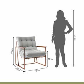 Características: Marca: Mais Decor Modelo: M03 Tecido Predominante: Linho Material da Estrutura: Ferro Tipo de Poltrona: Decorativa Acompanha Puff: Não Tipo de Encosto: Fixo Almofada do Encosto: Fixa Enchimento do Encosto: Espuma D-18 Altura do Encosto: 50 cm Tipo de Espuma do Encosto: Fibra Siliconada Tipo de Assento: Fixo Altura do Assento até o Chão: 45 cm Enchimento do Assento: Espuma D-26 Firmeza do Assento: Médio Tipo de Espuma do Assento: Espuma Convencional Material do Braço: Madeira Possui Apoio para Braços: Sim Enchimento do Braço: Não Possui Possui Pés: 04 Material dos Pés: Ferro Altura dos Pés: 31 cm Necessita Montagem: Não Recomendações de Uso, Manutenção e Limpeza: Uma boa maneira de aumentar o tempo de vida útil do seu sofá é evitar exposição direta do estofado ao sol, já que os raios podem queimar e manchar a grande maioria dos tecidos desses itens da sua casa. Suporta Até -kg-: 120 Possui Percintas Elásticas: Sim