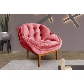 Poltrona Decorativa Marcela Em Tecido Veludo Com Base Em Madeira