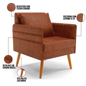 Poltrona Mari Corano Pés Palito Castanho Nozes - Marrom