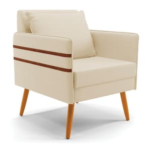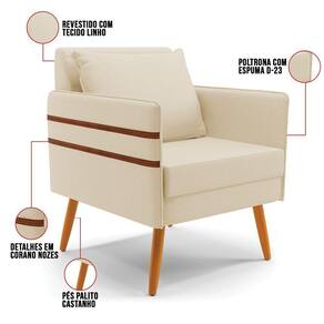 Poltrona Mari Linho Pés Palito Castanho A19 Bege