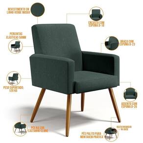 Suas infinitas possibilidades de combinação, a super versatilidade somados ao incrível conforto e maciez fazem da Poltrona Decorativa Para Sala de Estar e Recepção Maria W01 Linho Verde Musgo - Lyam Decor um produto indispensável para a sua casa! É a peça chave que você precisa para ornamentar de vez sua decoração, os pés palito inspiram leveza e o encosto e assento estofados garantem muita comodidade, mantendo a identidade visual moderna que ela possui.