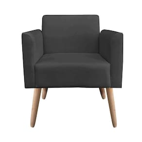 Poltrona Marisa Suede Preto Pés Palito Natural D'Rossi