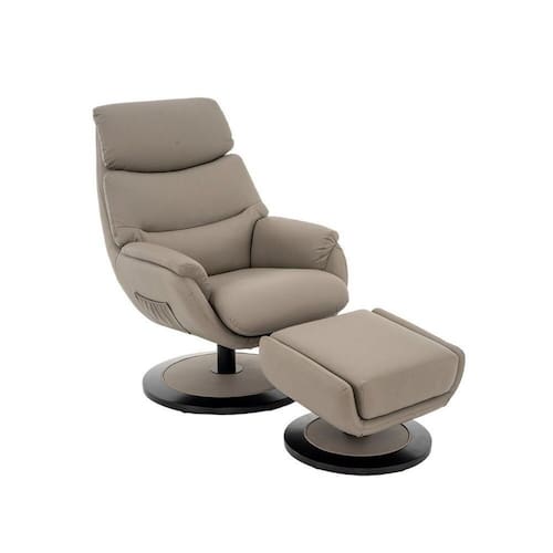 Acompanha um confortável apoio para os pés, também estofado, proporcionando uma experiência completa de descanso e bem-estar.